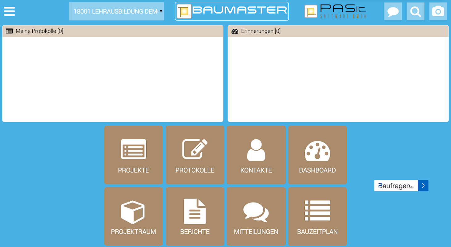 Mit der BauMaster Education App können Bauakademien, Berufsschulen, Lehrlingsausbilder, Bildungseinrichtungen, Ausbildungszentren und dergleichen, das Arbeiten mit dem digitalen Dokumentationstool BauMaster erlernen. Das BauMaster Education App wird auf einem eigenen Server betrieben und läuft unabhängig von der BauMaster Produktivanwendung.