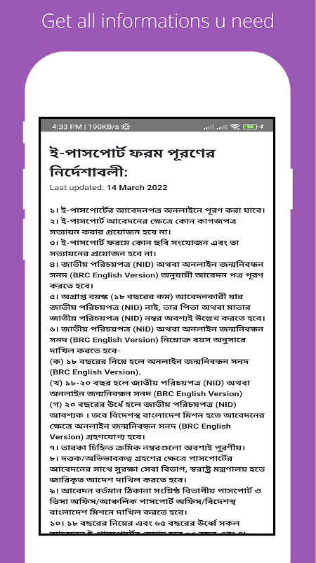 অ্যাপটি দ্বারা এমআরপি বা ই-পাসপোর্ট টেটাস চেক / নির্দেশনা / আবেদন কিভাবে করতে হয় তা শেখানো হয়েছে