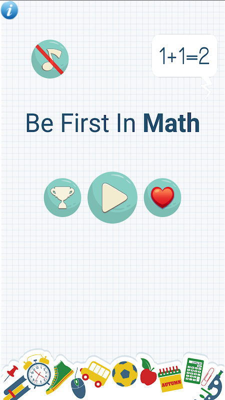 Be First In Math is the app you need to train your brain with math and perform quicker addition,substraction and multiplication .