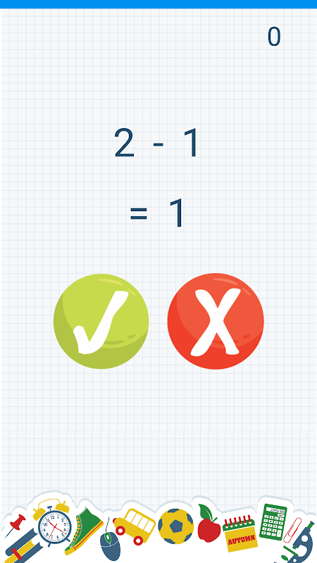 ✓ Equations will be shown on the screen and you have to tell if it is correct or not