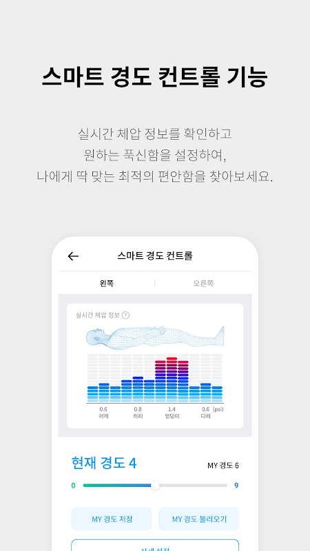 آپ ریئل ٹائم جسمانی دباؤ کی معلومات کو چیک کرتے ہوئے سختی (نرم یا مضبوط) سیٹ کر سکتے ہیں جو آپ کے مطابق ہو۔