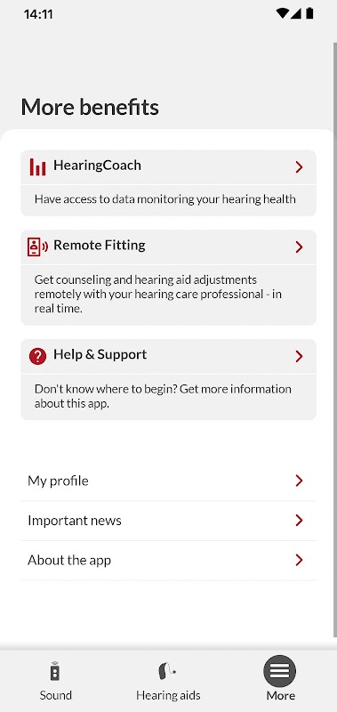 ایپ زیادہ تر ہیئرنگ ایڈ ماڈلز کے ساتھ مطابقت رکھتی ہے۔ اگر آپ کے پاس سن 2016-2018 کے دوران سماعت کے آلات ہیں اور انہوں نے ابھی تک انہیں اپ ڈیٹ نہیں کیا ہے، تو اس ایپ کے کام کرنے کے لیے سماعت امداد کی اپ ڈیٹ درکار ہے۔ ہم آپ کے سماعت کی دیکھ بھال کے پیشہ ور کے ساتھ آپ کے معمول کے چیک اپ کے دوران باقاعدگی سے سماعت امداد کی تازہ کاری کی تجویز کرتے ہیں۔