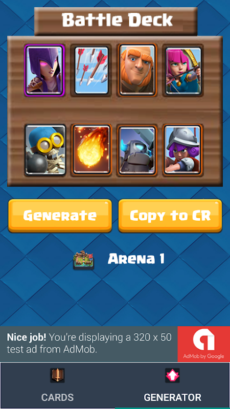 App has simple functionality you just need to click on generate button to generate best deck for CR.
