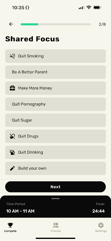 ہر روز، بیسٹیو آپ کو گھنٹے کے حساب سے سادہ چیک ان کے ذریعے رہنمائی کرے گا، یہ پوچھے گا: "کیا میں نے اپنی پوری کوشش کی؟" جب آپ دن بھر اپنی کوششوں کو ٹریک کرتے ہیں تو یہ مستقل عکاسی آپ کو مرکوز اور متحرک رکھتی ہے۔