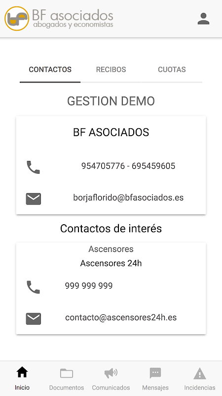 A través de esta aplicación BF Asociados, queremos dar un servicio completo y accesible a todos nuestros clientes, mediante el cual pueden consultar y estar al día de todo lo acontecido en su comunidad de propietarios.