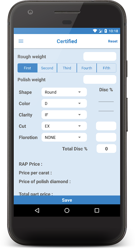 BGRough application provides you to calculate rough price. it will allow you to calculate certified and non certified diamond value.