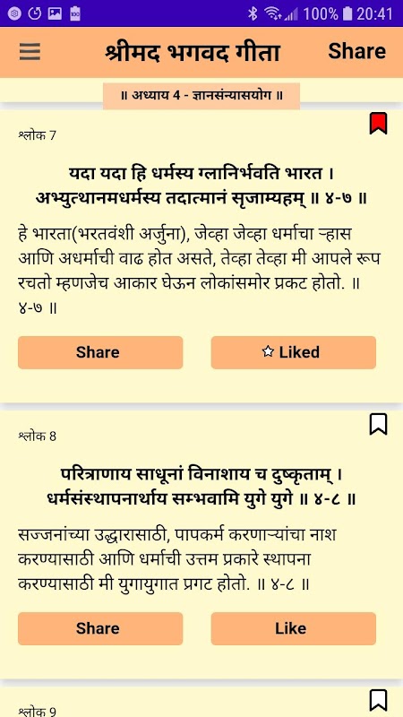 مراٹھی کے معنی سمجھنے میں آسانی سے تمام "ایڈھاس" اور "شلوکاس" سنسکرت کے متن میں دستیاب ہیں۔ صارف آسان رسائی کے لئے "شلوکاس" کو بُک مارک کرسکتا ہے۔ صارفین پسندیدہ شلوکاس کی فہرست بھی بنا سکتے ہیں۔ صارف پیغام رساں ایپس یا ای میل خدمات کا استعمال کرکے دوستوں اور کنبہ کے ساتھ آسانی سے "شلوکاس" کا اشتراک کرسکتا ہے۔ ہم اس ایپلی کیشن کی مزید بہت سی خصوصیات کے بارے میں منصوبہ بنا رہے ہیں تاکہ اسے استعمال میں آسانی اور زیادہ انٹرایکٹو کے ساتھ مزید درست بنایا جاسکے۔