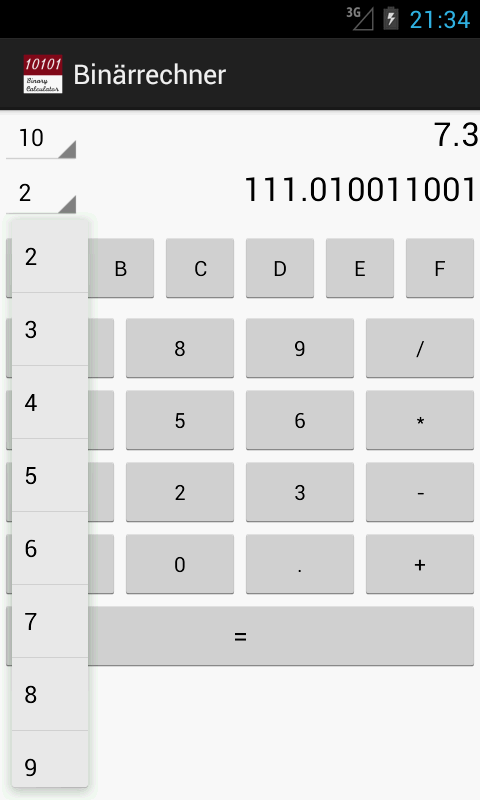 Input of all number systems from binary system to hexadecimal system (not all systems in Light Version). Conversion of these number systems into one other. Addition, subtraction, multiplication and division of all number systems.