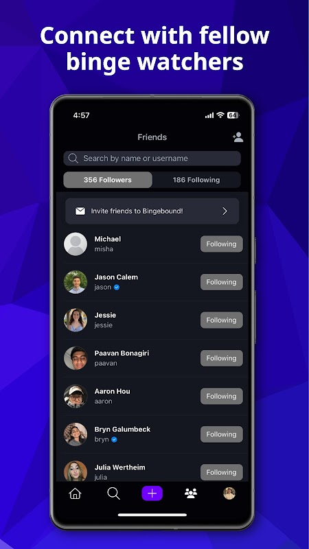 - اپنی شو فہرستوں کے ساتھ ایک پروفائل بنائیں: Binging، Binge کرنا چاہتے ہیں، اور Binged۔