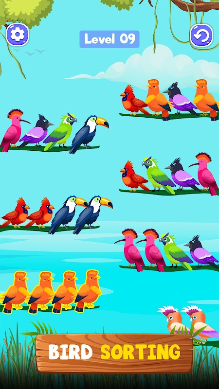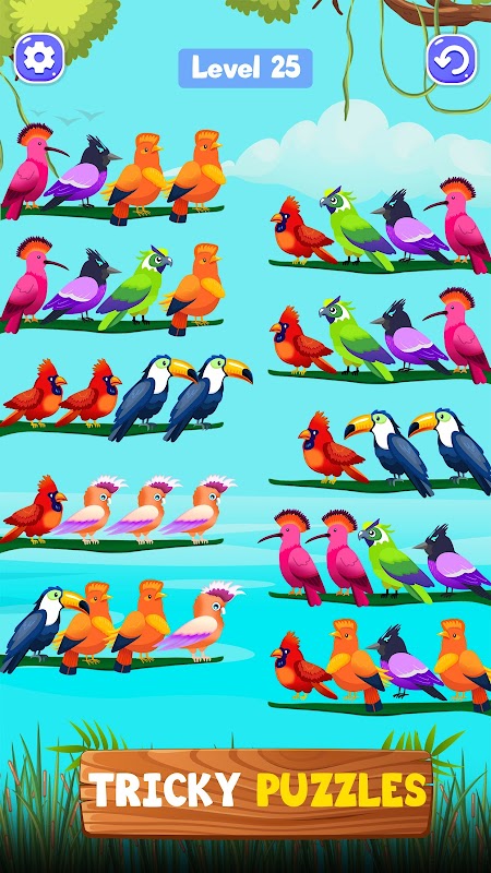 Test your brain with challenging levels of bird sort puzzle in this relaxing sorting puzzle game. Bird sort is not only to stimulate your brain but also stress relieve your mood. Think, strategize, predict and use colourful birds at every move & win coins at the end of each level and unlock new birds, branches and themes. This color bird sort puzzle sort game will enhance your intelligence and IQ level.