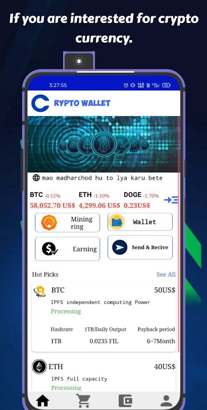 This Bitcoin BTC Cloud Mining App works as a miner of bitcoin on cloud. You can use this app to buy bitcoin.
