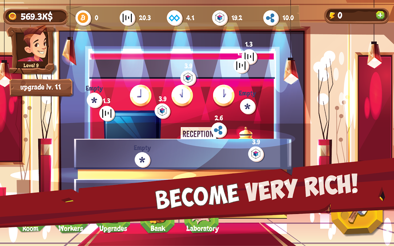 آپ کے گھر میں میز کے سوا کچھ نہیں اور دولت مند بننے کی خواہش ہے۔ کان کنی شروع کریں ، پہلے کرپٹ کرنسی حاصل کریں ، اپنی کان کنی کی طاقتوں کو اپ گریڈ کریں ، بہتر سازوسامان میں سرمایہ لگائیں ، کارکنوں اور دیگر مختلف سوادج اپ گریڈ کو ملازمت دیں جو آپ کی کان کنی کی حکمت عملی کو زیادہ منافع بخش بناسکیں۔
