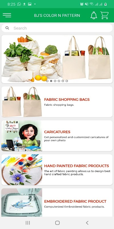 BJ’s COLOR N PATTERN manufactures eco-friendly fabric products since 2011.This app will help you to get huge range of Hand painted, Embroidered and screen printed- fabric bags and products. We have eco-friendly and artistic fabric gifts item for you. We design it according to customer’s requirement. We can do personalized and customized art work on fabric products. We have team of 150 tribal women for stitching these fabric products. Your single purchase or order can give smile on tribal women’s faces. We work hard on product quality and its art value. Fabric shopping bags are perfect to replace plastic carry bags.