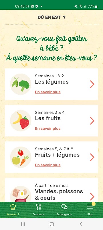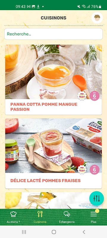 گلوٹین کے ساتھ یا اس کے بغیر، دودھ کے ساتھ یا اس کے بغیر اور بچے کی عمر کے لحاظ سے... آپ کی BlédiPOP ایپلیکیشن پر 1000 سے زیادہ ترکیبیں دستیاب ہیں! آپ کو بس انہیں بنانا ہے... قدم بہ قدم۔ ہمارے ماہرین غذائیت کے ساتھ تیار کردہ ان تمام ترکیبوں کے ساتھ، اور ماں یا والد کے پیار سے پکایا گیا، بچہ اس سے بہتر کھانے کا خواب نہیں دیکھ سکتا!