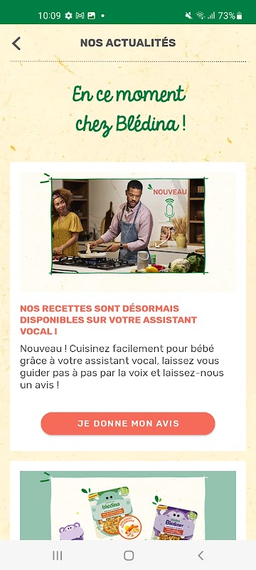 ہر روز، BlédiPOP آپ کو آپ کے بچے کی عمر کے مطابق مختلف مینیو پیش کرتا ہے اور دنوں میں اس کی ذائقہ کی کلیوں کو بیدار کرتا ہے۔ ان کی غذائی ضروریات کے مطابق ناشتے، دوپہر کے کھانے، ناشتے، رات کے کھانے کے لیے روزانہ کی تجاویز تلاش کریں۔ BlédiPOP کے ساتھ، دن بہ دن، بچے کا کھانا تیار کرنا بچوں کا کھیل بن جاتا ہے! BlédiPOP آپ کے بچے کی خوراک کے تمام مراحل کو پرسکون طریقے سے گزارنے کے لیے مشورہ اور نکات بھی ہے۔