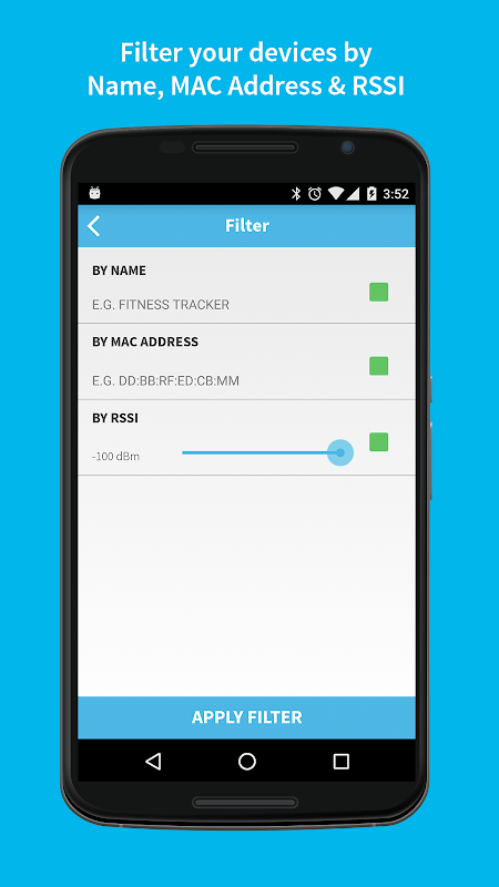 ⭐ اسمارٹ فلٹرز: نام، UUID، RSSI، یا بڑی/معمولی اقدار کے لحاظ سے تلاش کریں۔