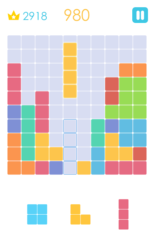 The Game ends when you don't have enough space to put the elements into 1010 board.