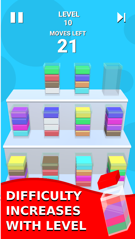 بلاک چھانٹنا 3D ایک رنگین بلاک چھانٹنے والا کھیل ہے جس میں تمام مماثل رنگ کے بلاکس کو الگ ٹیوب میں ترتیب دیں۔ ٹیوبوں میں رنگین بلاکس کو ترتیب دینے کی کوشش کریں جب تک کہ ایک ہی رنگ والے تمام بلاکس سطح کو عبور کرنے کے لئے ایک ہی ٹیوب میں نہ رہیں۔ یہ ایک 3D چھانٹیا والا کھیل ہے جسے بال چھانٹنے والا کھیل ، اسٹیک چھانٹنے والا کھیل ، چھانٹنے والا پہیلی کھیل ، چھانٹنے والی گیندوں ، رنگین گیندوں کی چھانٹ رہا ہے ، ہوپ اسٹیک ہے ، اسے 3D ، رنگ چھانٹنا ، مکعب کی ترتیب ، میچ گیندوں کا رنگ ، وغیرہ بھی کہا جاتا ہے۔