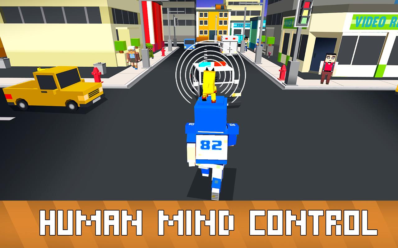 Live the blocky animal life of crazy hypno cat in the simulator. You’ll walk by yourself, but you have a power for survival - human mind control! Craft your strategy with it in the blocky city, and complete town quests for survival. Have crazy fun in blocky city, but be careful - mischief attracts city authorities and army, they can complicate your survival in the city of simulator.