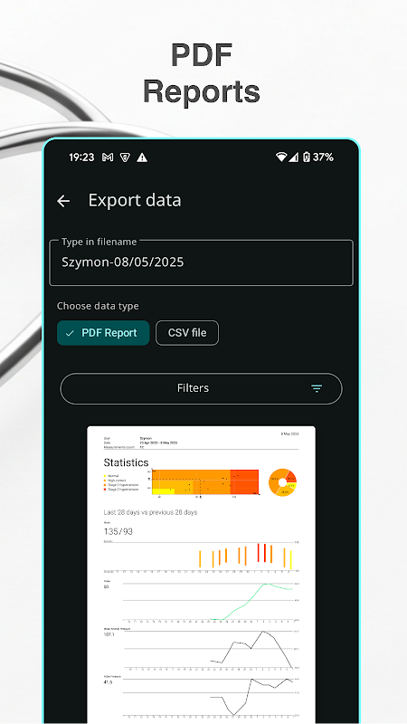 📄 ڈاکٹر کے لیے تیار پی ڈی ایف رپورٹس: آسانی سے اپنی بلڈ پریشر کی تاریخ کو جامع پی ڈی ایف رپورٹس کے طور پر برآمد کریں، چارٹس کے ساتھ مکمل۔ اپنی پیشرفت کو اپنے معالج کے ساتھ آسانی سے بانٹیں۔
