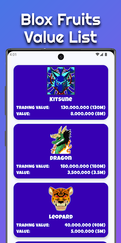 یہ ان کھلاڑیوں کے لیے ایک ایپلی کیشن ہے جو موبائل آلات سے سادہ اور آسان طریقے سے لاجواب بلوکس فیوٹس کے پھلوں کی تازہ ترین اقدار کی تلاش میں ہیں۔