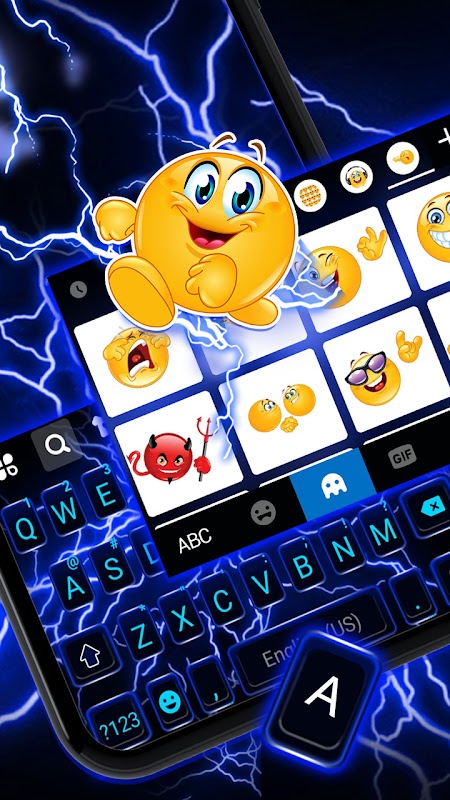 بلیو لائٹننگ ایموجی کی بورڈ 150+ زبانوں، 6000+ رنگین تھیمز (+DIY تھیمز)، ٹھنڈے فونٹس، چہرے کی ایموجیز😜، کی بورڈ کا پس منظر🎇، آوازیں 📣، GIFs اور لے آؤٹ کو کور کرتا ہے۔ *(≖ ‿ ≖)✧ سمجھ گیا! TᕼᗩT’ᔕ ᘜᖇᗴᗩT!