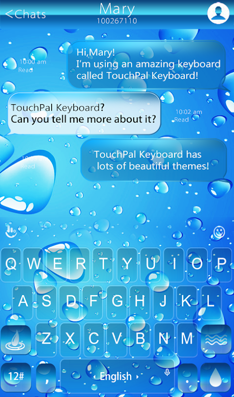 New Free Blue Water Drop keyboard theme for TouchPal Emoji Keyboard. Go, get it!