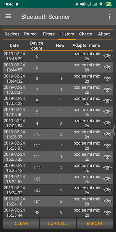 - RSSI، پتہ، نام، وینڈر اور دیگر کے ذریعہ آرڈر کریں۔