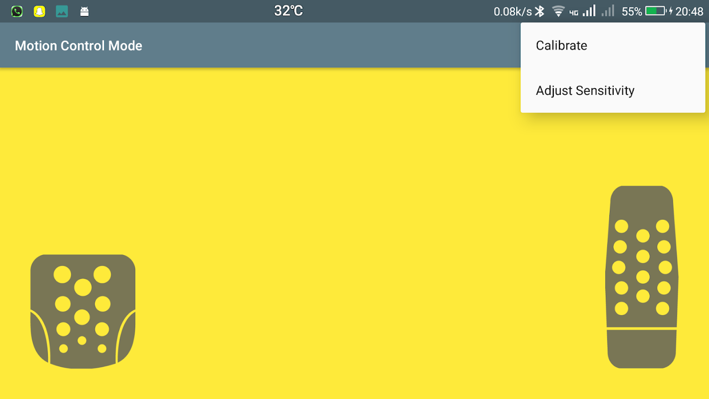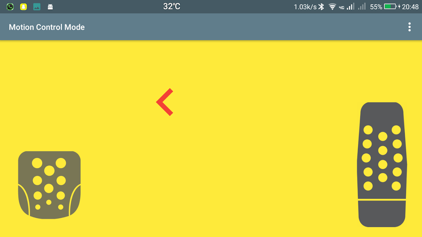 Use the break pad and accelerator pad to make the robocar move forward or backward. Tilt your device towards the left or right to turn the robocar accordingly