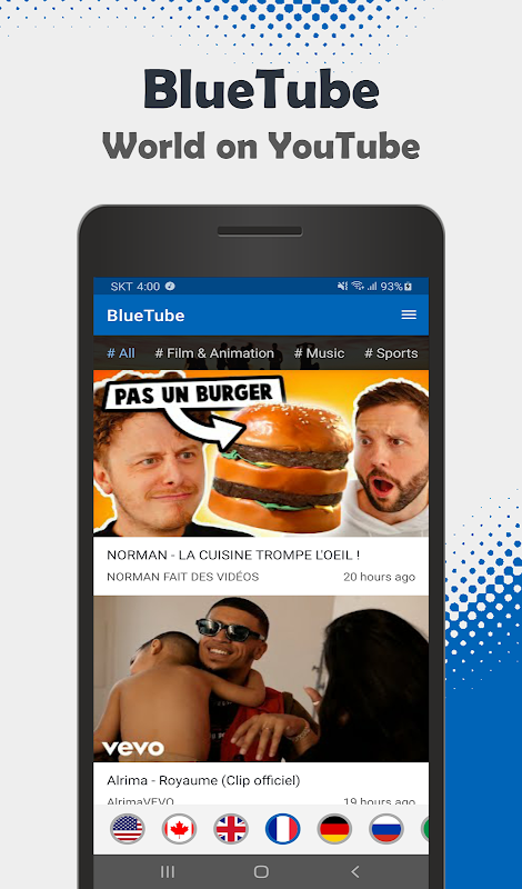 خاص طور پر ، ہم نے مشہور چارٹنگ فیچر کا استعمال کیا ہے تاکہ فلموں ، موسیقی ، کھیلوں ، ساتھی جانوروں ، تفریح ، کامیڈی اور گیمز کو ایک نظر میں مقبول چارٹ دیکھنا آسان ہو۔ ہم نے کنٹری سیٹنگ فنکشن کو بھی سامنے رکھا تاکہ آپ آسانی سے ملک بدل سکیں اور عالمی رجحانات دیکھ سکیں۔ اسے بلیو ٹیوب کے ذریعے دنیا کا سفر سمجھیں۔
