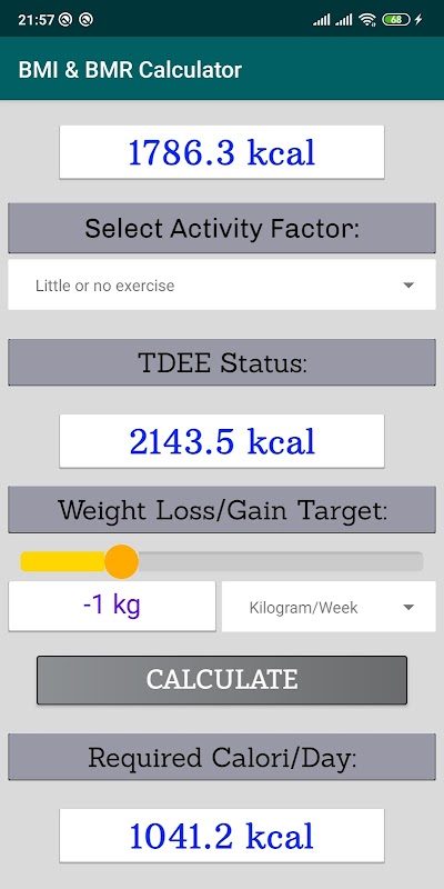BMI ، BMR ، TDEE اور وزن میں کمی کے ل cal کیلوری کا حساب لگانے کے لئے ایک چھوٹی اور ہلکی ایپ۔