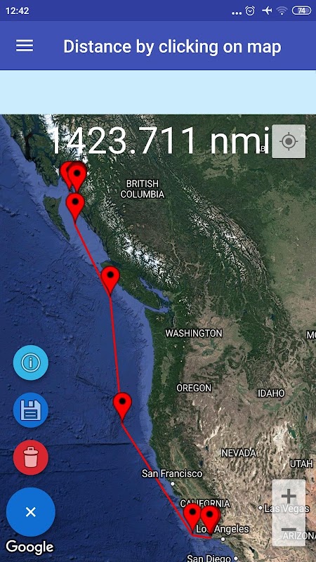 5. Find the distance in straight line between two points using coordinates and between two or more points by clicking on map. You can save and manage the distances.