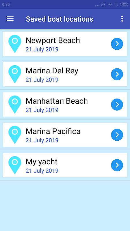 6. You can save and manage your boat location (in real time using GPS provider or using coordinates or by clicking on map). Moreover you can navigate to a specific boat location.