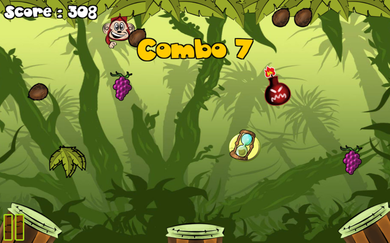 * Collect fruits and gain combos that result in a higher score for more coins