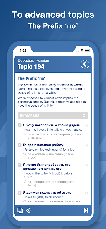 'بوٹسٹریپ روسی گرامر' گرامر کی بنیادی باتوں میں ٹھوس بنیاد فراہم کرتا ہے جو روسی کو دوسری زبان کے طور پر عبور کرنے کی کلید ہے۔ گرائمیکل قواعد اور تصورات کو اہمیت کے لحاظ سے واضح طور پر بیان کیا گیا ہے۔ ہر موضوع آخری - قدم بہ قدم بناتا ہے۔