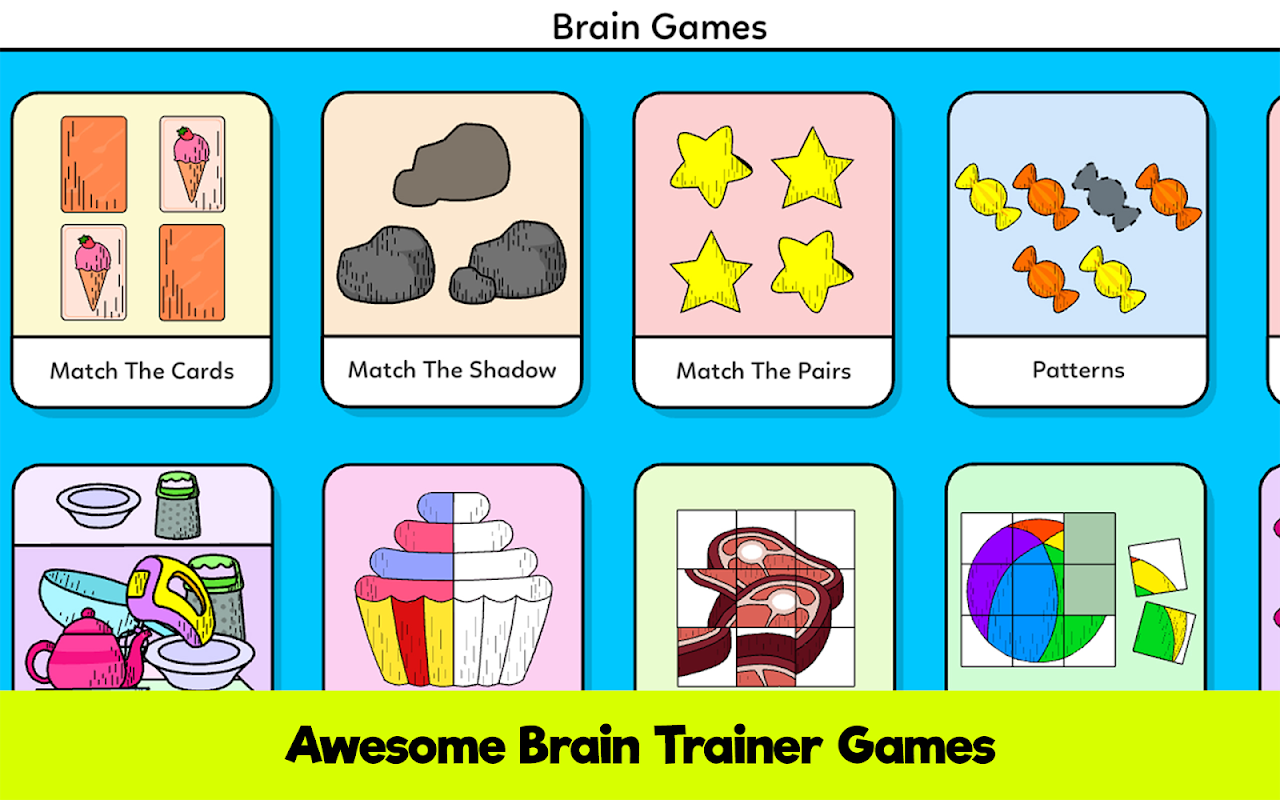 If you're a parent looking for brain games for kids, this is the right choice! In this app, you will find lots of memory games, brain booster games and logic puzzles specially made for your young learner.