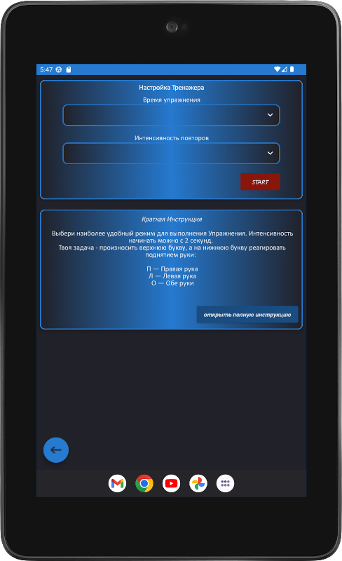 ایپلی کیشن "حروف تہجی" مشق پر مبنی ہے، جس کا مقصد انتہائی اعلی پیداواری حالت میں داخل ہونا ہے۔ یہ مشق جان گرائنڈر نے بنائی تھی، جو ایک امریکی مصنف، ماہر لسانیات اور نیورو-لسانی پروگرامنگ (NLP) کے شریک مصنف ہیں۔
