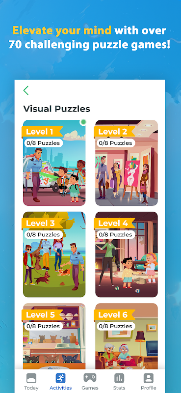 ✔️ آپ کے 6 علمی ڈومینز بشمول میموری، توجہ اور زبان کو تربیت دینے کے لیے 53+ متحرک دماغی کھیل۔
