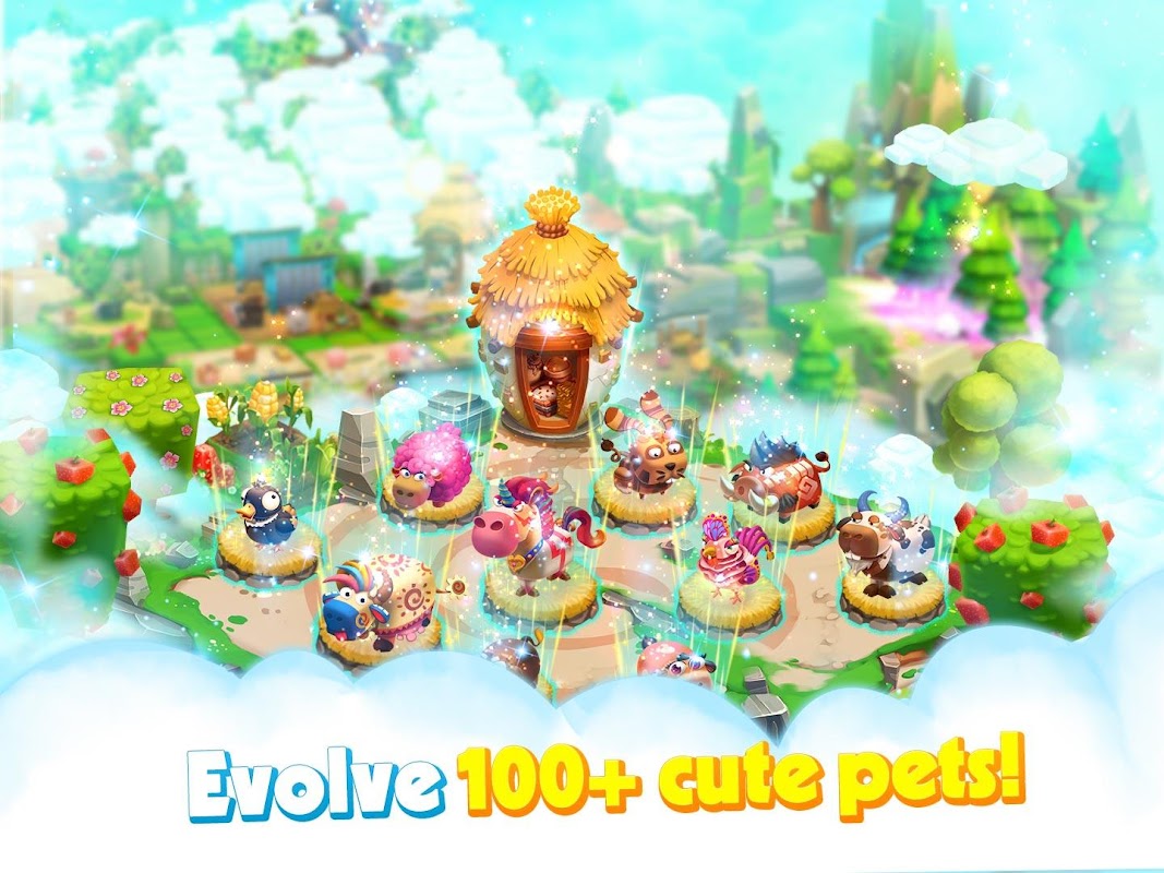 Enjoy a hey day with naughty animals . Beware! They can be free to wander where they like. They might even get lost above the cloud. Feed more, more gold. Evolve to own a zoo with 100+ unique animals (pig, cow, chicken, sheep, cat, rabbit, ... & a dozen of rare & anomaly animals) & get more coins Remember to let your animals go to the forest to get animal evolution &wait to see the secrets unfold with favorite farming game