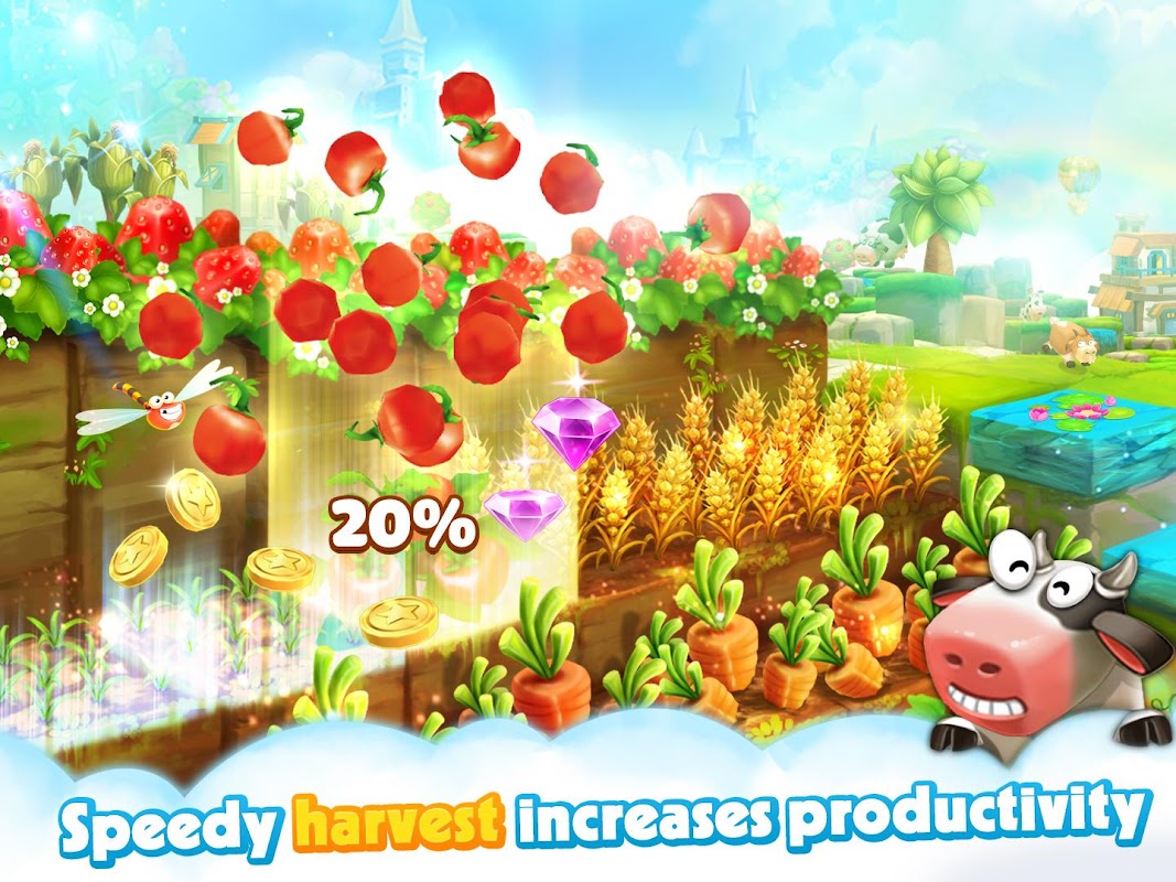 Harvesting requires a little skill. Do it fast & get more products. You will even need to reshape your farm land to suit your developing skills. Love sugar cubes? Crops, Corns, Strawberries, Carrots, Tomatoes, Jam… are shaped into cubes that look really fun, cute and adorable in country.