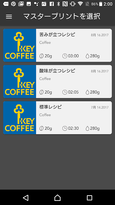 کافی نکالنے والے لاگ "بریونگ پرنٹ" کے علاوہ، ایک کافی نکالنے والی ایپ جو ابتدائیوں سے لے کر پروفیشنل بارسٹا ریسیپی ریسرچ تک کافی کی زندگی کی وسیع رینج کو سپورٹ کرتی ہے۔ جاپان سے پہلے شائع ہوا۔