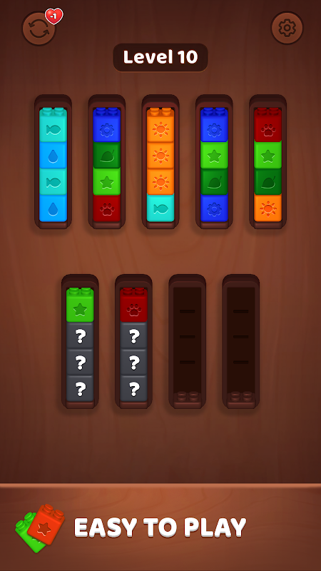 Brick Sort Color: Block Puzzle میں، آپ کا مشن مماثل رنگوں یا علامتوں کے بلاکس کو ایک ہی کالم میں ترتیب دینا ہے — اور انہیں جام کرنے سے بچیں، جو آپ کے اگلے اقدام کو روکتا ہے۔ ہر سطح ایک نیا چیلنج پیش کرتا ہے: پہلے تو آسان، لیکن جیتنے کے لیے تیزی سے مہارت، حکمت عملی کی منصوبہ بندی اور منطقی سوچ کی ضرورت ہوتی ہے۔