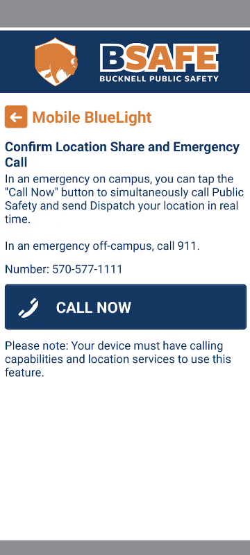 - موبائل بلیو لائٹ: کسی بحران کی صورت میں بکنیل یونیورسٹی پولیس کو ریئل ٹائم میں کال کریں۔