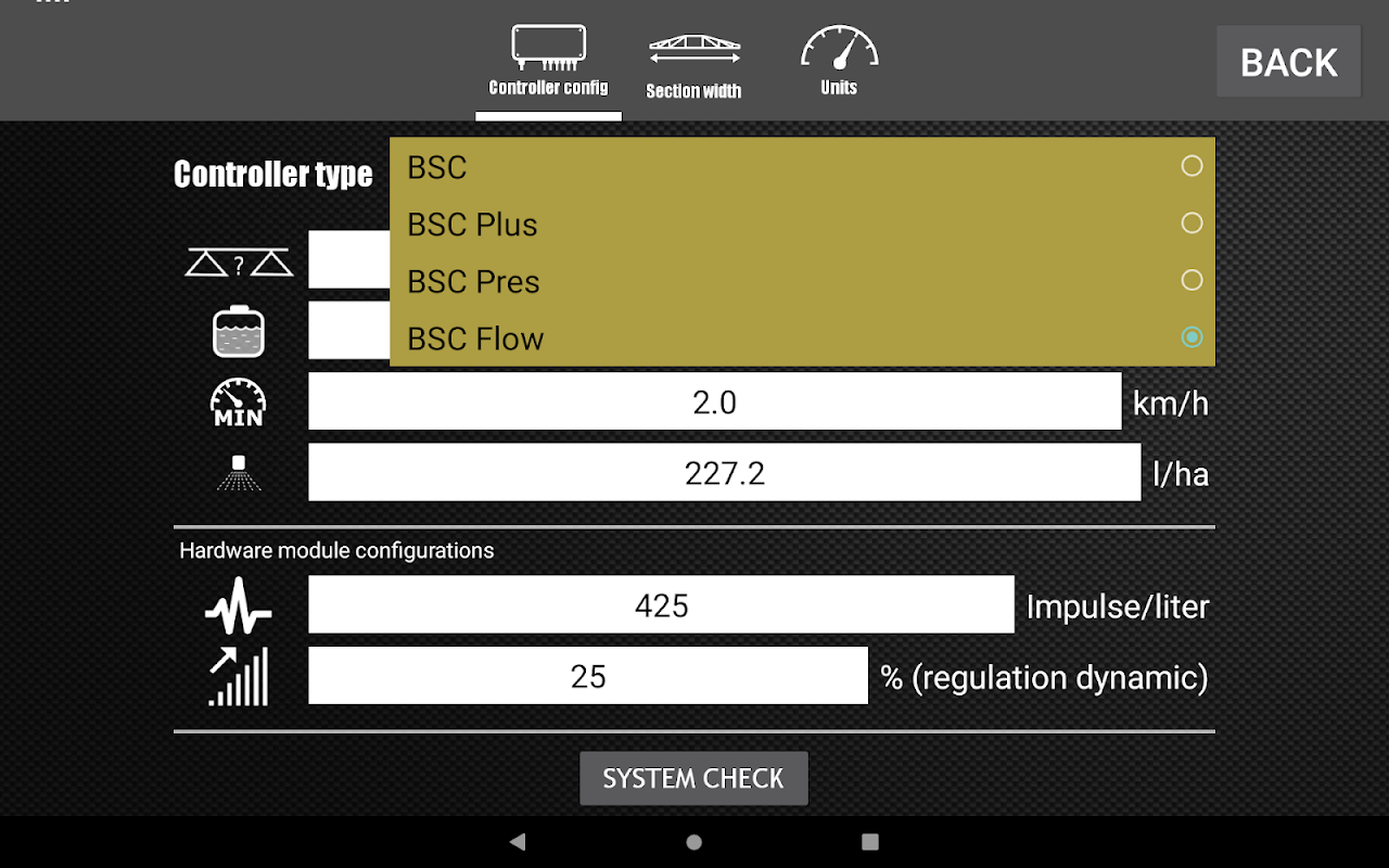 درخواست کے ذریعہ بی ایس سی کنٹرولر کے تمام افعال تک رسائی حاصل کی جاسکتی ہے۔ سافٹ ویئر - اگر