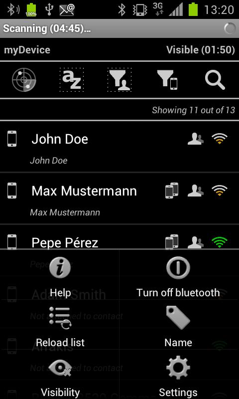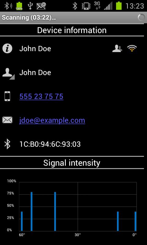 - Timers to show the remaining time of scanning or the remaining time of the device being visible.