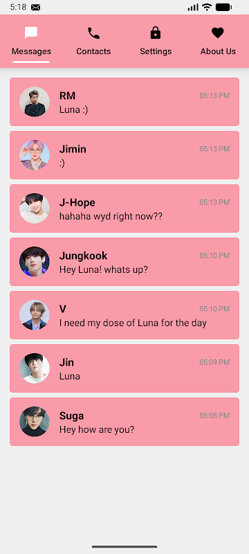 کے پرانے ورژن BTS Chat Messenger Simulator