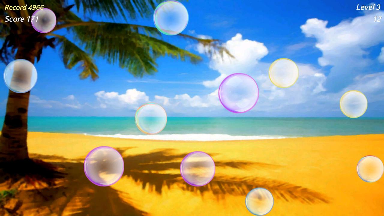 A dip in the fun for all the 'children' with the game of soap bubbles that are going away in the wind! The objective of the game is to pop as many bubbles as possible to pass to the next level and beat the record! There are only two rules to follow. The first is not to blow soap bubbles never black, otherwise the game ends immediately, and the second is to be able to blow all the other colored bubbles within the time limit set for each level. The large bubbles give a point, five points medium bubbles and the bubbles small ten points.