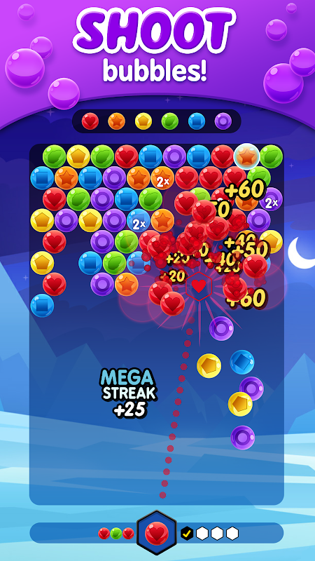 کلاسیکی کھیل کے ایک نئے ورژن میں اپنی بلبلا شوٹر کی مہارت کا استعمال کریں۔