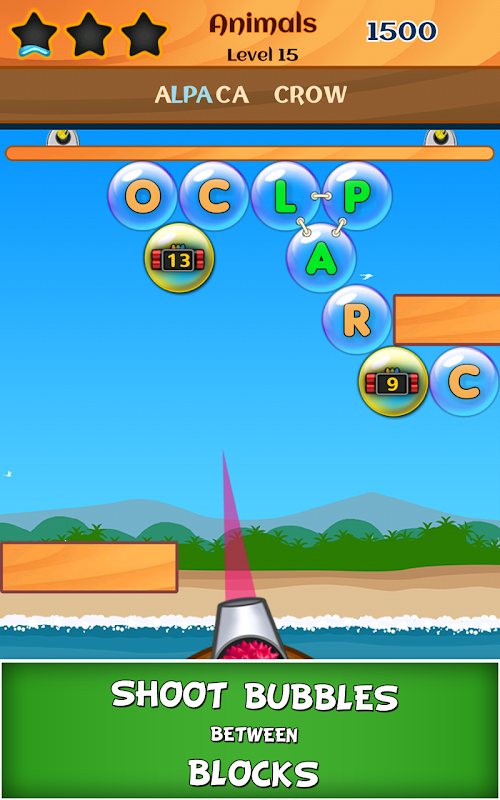 Shoot Letter Bubbles and form Words in 22 topics, 1000+ addictive levels