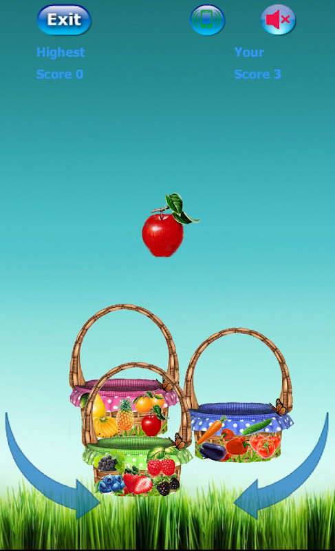 You should catch the falling fruits, berries and vegetables into appropriate bucket by pressing on relevant bucket or nearest arrow.